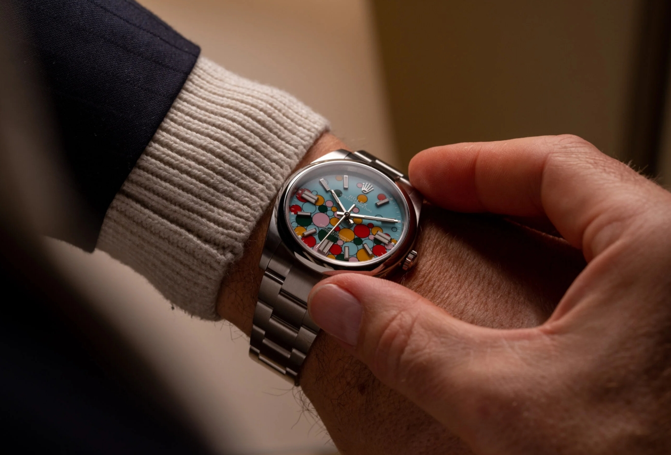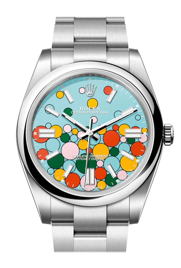 Rolex at Watches & Wonders this year can be described in two words: acid trip. Sure, there were the usual incremental updates to lines such as the GMT Master II and Rolex Daytona. And it was exciting to see the new 1908 have a sapphire caseback across all 1:1 replica Rolex watches and the platinum anniversary Daytona as well. Even the debut of RLX titanium in the Yacht-Master 42 line was an exciting development above the typical colour change of a bezel or dial. But where things got really weird and, perhaps, wonderful, depending on your tastes, were the new Day-Date Jigsaw models and the Rolex Oyster Perpetual Celebration Dial.